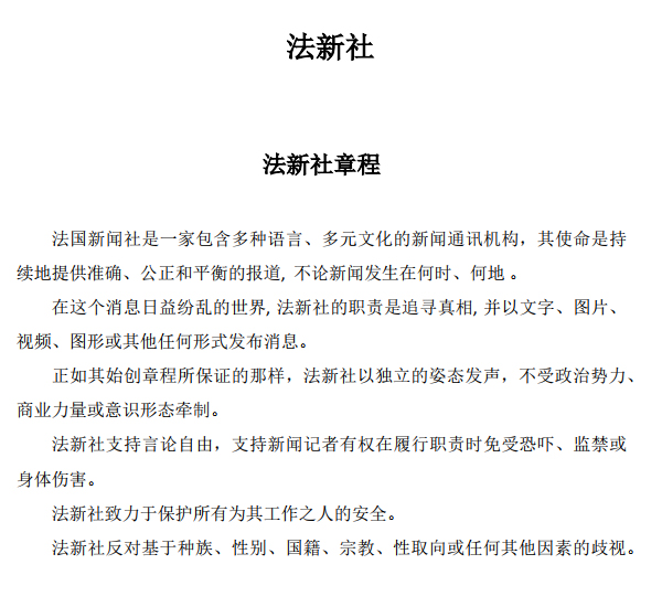 The AFP ethics code of Editorial Standards and Best Practices in Chinese
