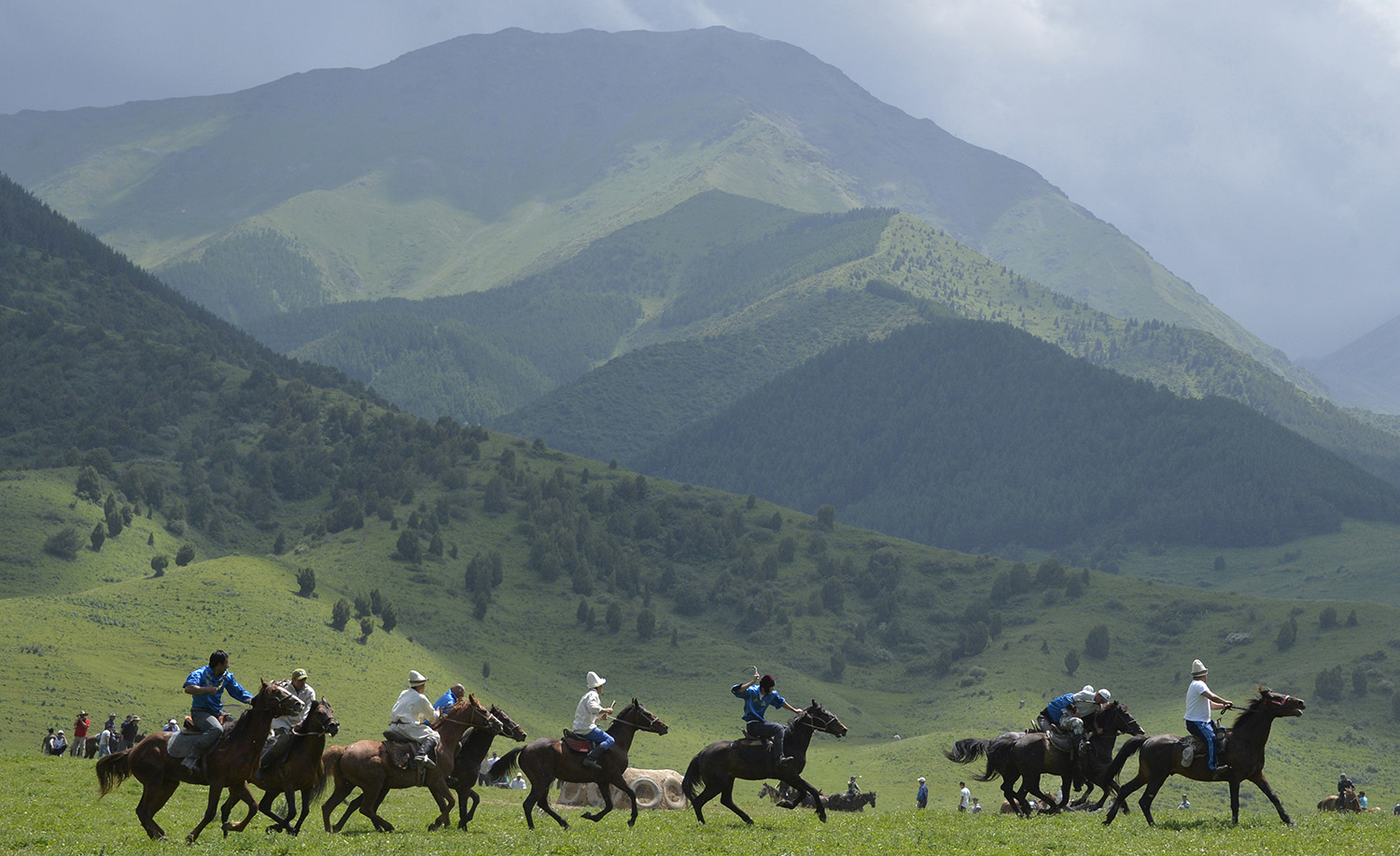 The action is fast and furious as hundreds of horsemen known as chapandaz -- dressed in colourful robes, baggy trousers and leather boots -- wrestle over the dead animal, fighting off competitors eager to snatch it away.